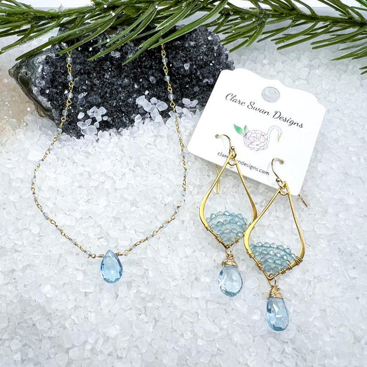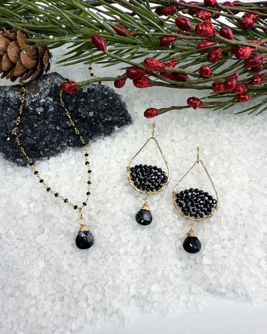 Black Spinel Gemstone Wrapped Teardrop Earrings