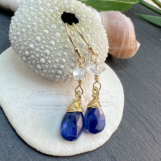 Kyanite & Herkimer Diamond Drop Earrings