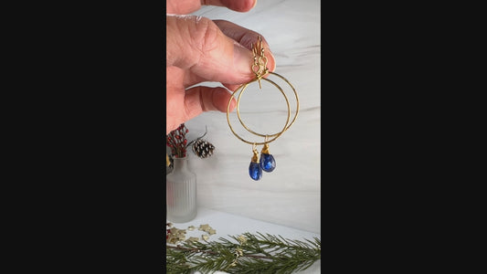 Kyanite Gold Filled Hammered Hoop Earrings