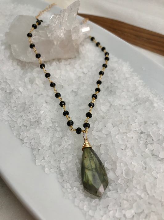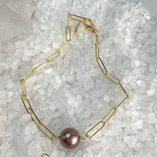 Mini Cone Shell, Pearl & White Topaz Dangle Necklace