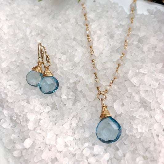 Ocean Light Drop Earrings – Larimar, Chalcedony & Blue Topaz