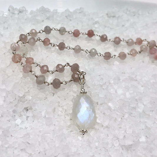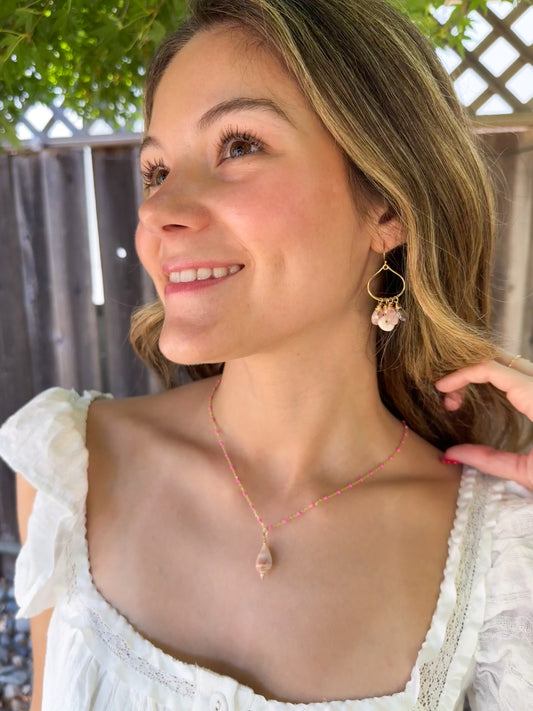 Puka Shell, Morganite & Pink Pearl Satellite Necklace