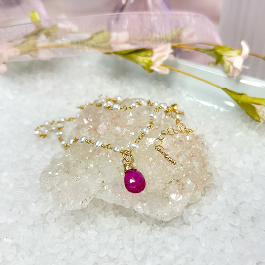 Pink Tourmaline & Pearl Flower Necklace | Vintage-Inspired Gold