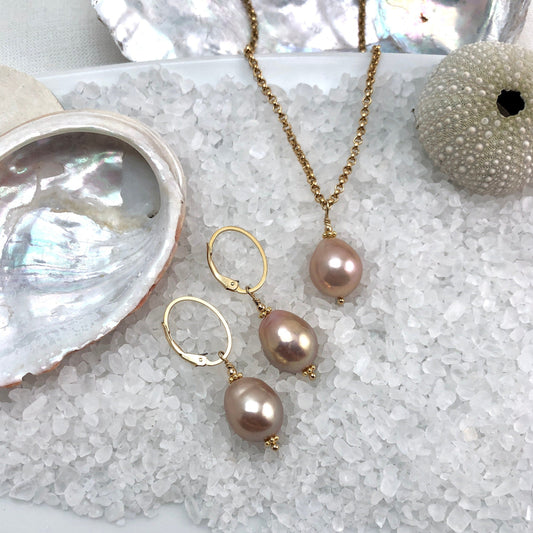 Pink Puka, Morganite, Pearl & Amethyst Teardrop Hoops