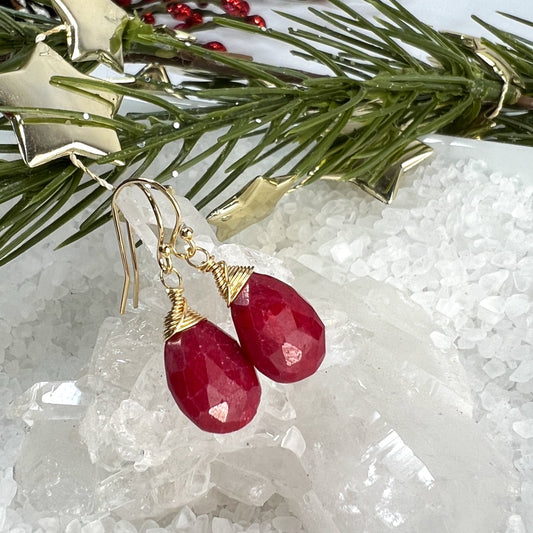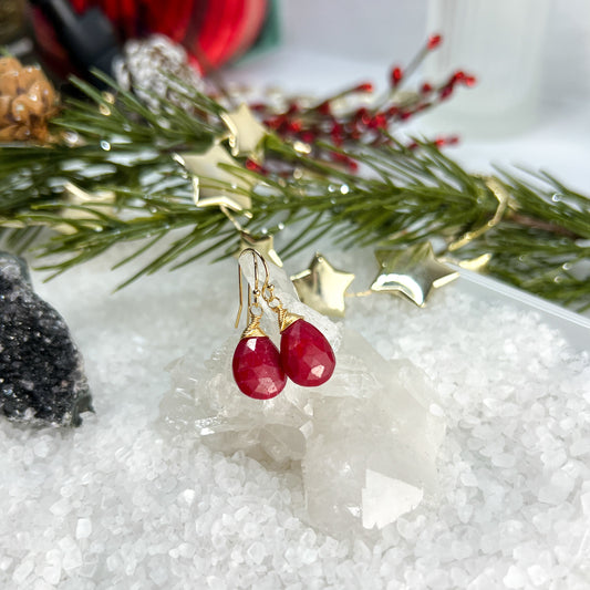 Rubellite Tourmaline Drop Earrings | Gold Filled Berry Red Gems