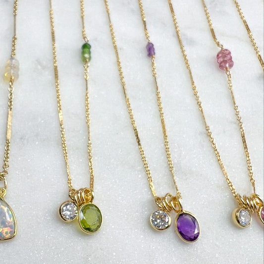 Gemstone & CZ Charm Necklaces