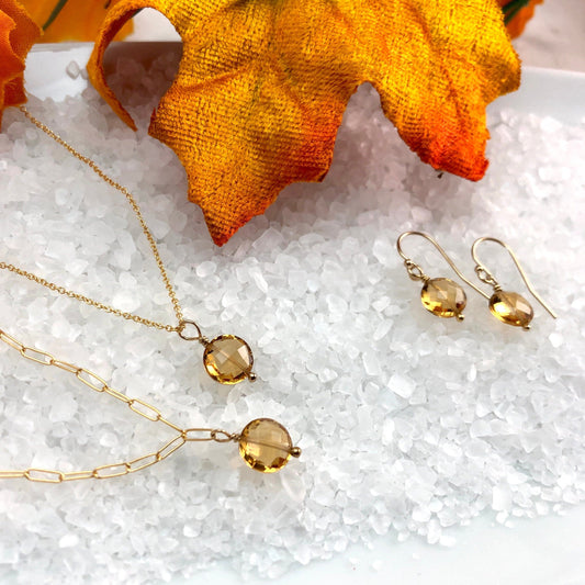 Citrine Necklace, Earring & Bracelet Birthstone Gift Set