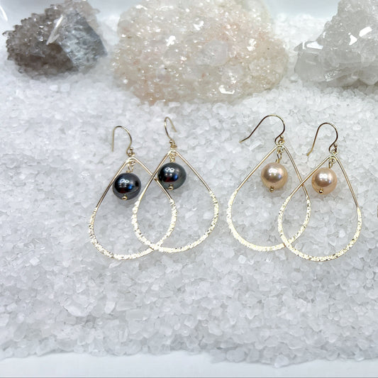Tahitian Pearl Gold Filled Textured Teardrop Hoops