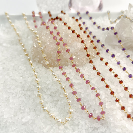 Gemstone Station Necklace, Iolite Necklace, Amethyst Necklace, Rhodolite Garnet Necklace