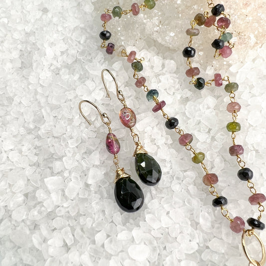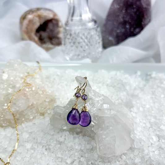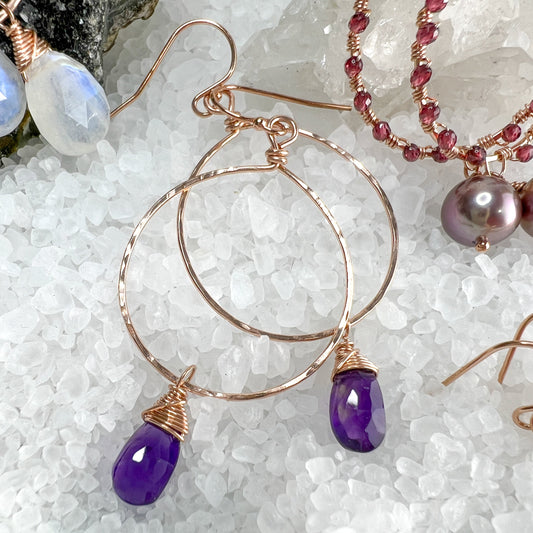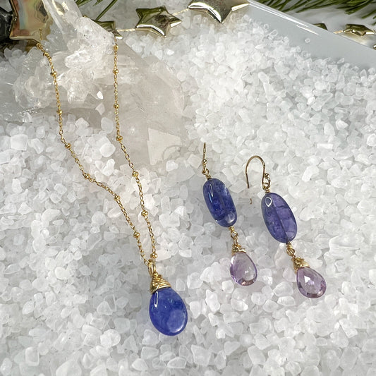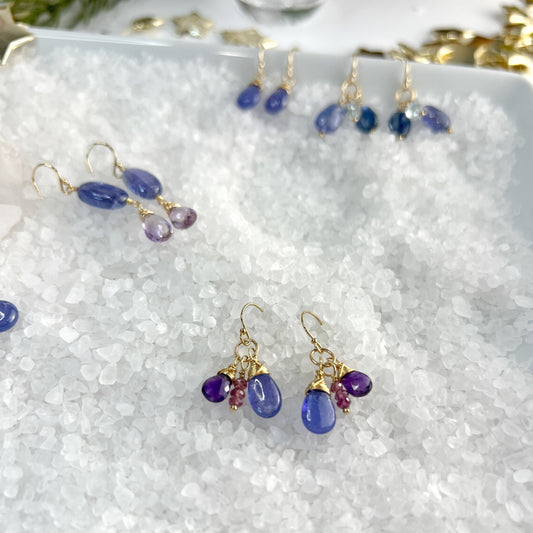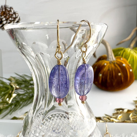 Tanzanite, Amethyst & Rhodolite Garnet Dangle Earrings