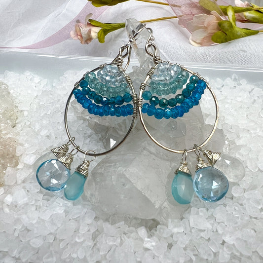 Blue Topaz Wrapped Arabesque Hoop Earrings