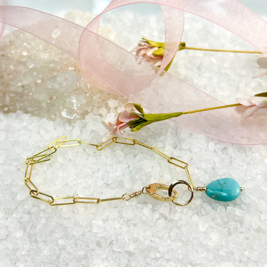 Sleeping Beauty Turquoise Nugget Paperclip Link Bracelet