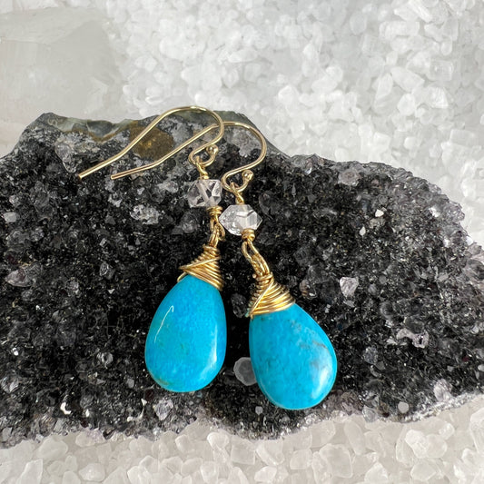 Sleeping Beauty Turquoise & Herkimer Diamond Drop Earrings