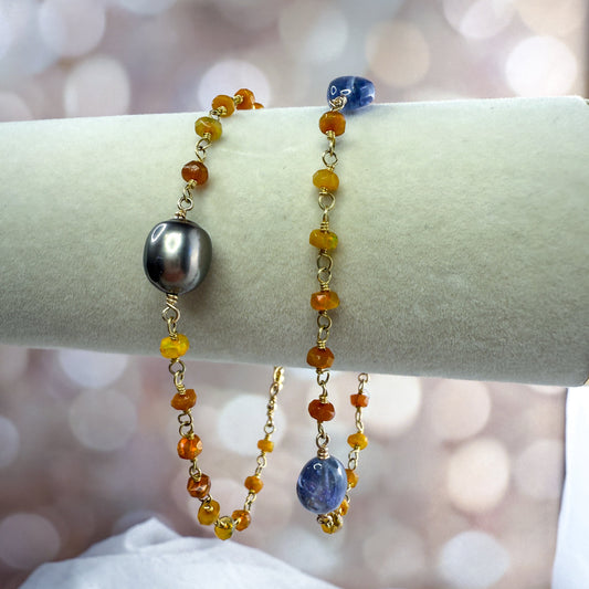 Fire Opal Bracelet Collection – Tanzanite or Tahitian Pearl