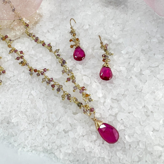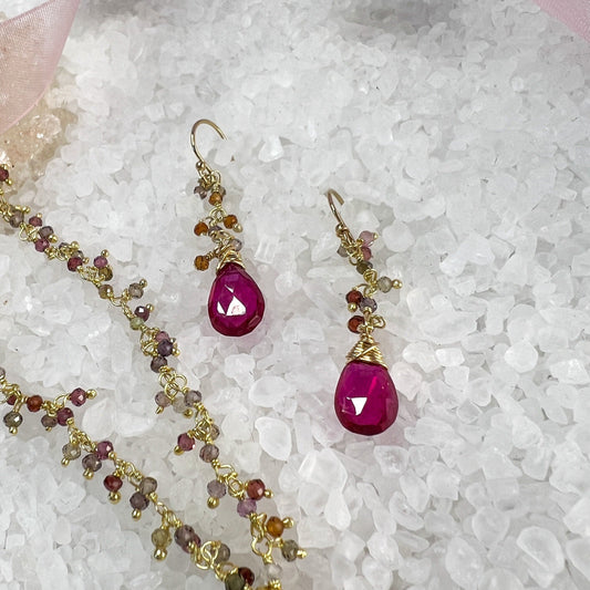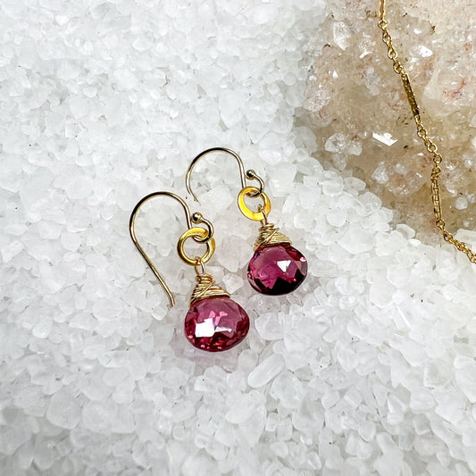 Rubellite Tourmaline Drop Earrings | Gold Filled Berry Red Gems