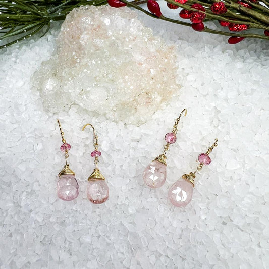 Pink Morganite & Tourmaline Earrings | Gold Filled Drop Earrings
