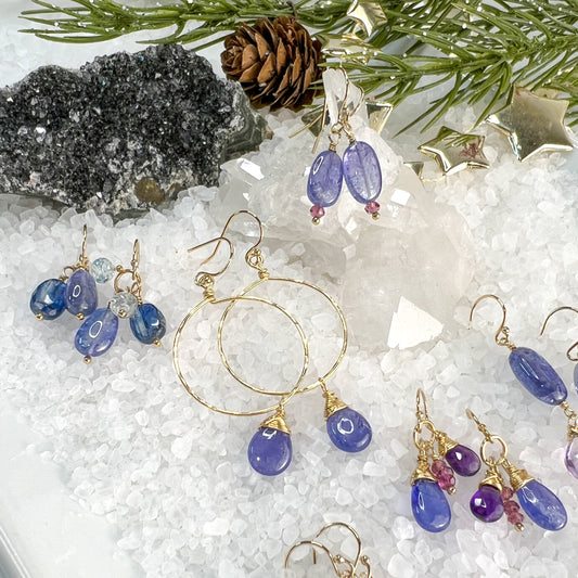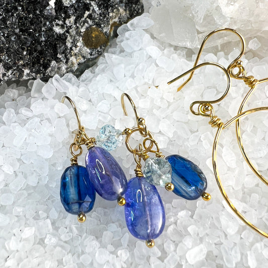 Tanzanite, Kyanite & Aquamarine Dangle Earrings