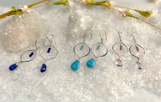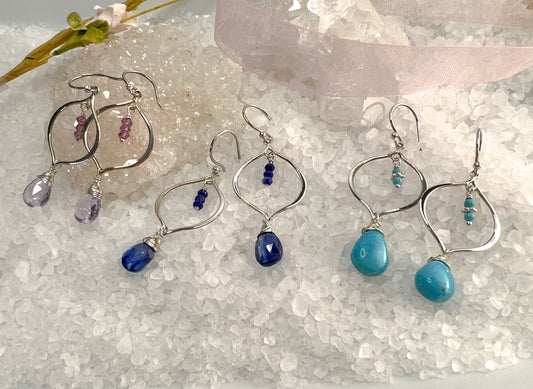 Ocean Light Drop Earrings – Larimar, Chalcedony & Blue Topaz