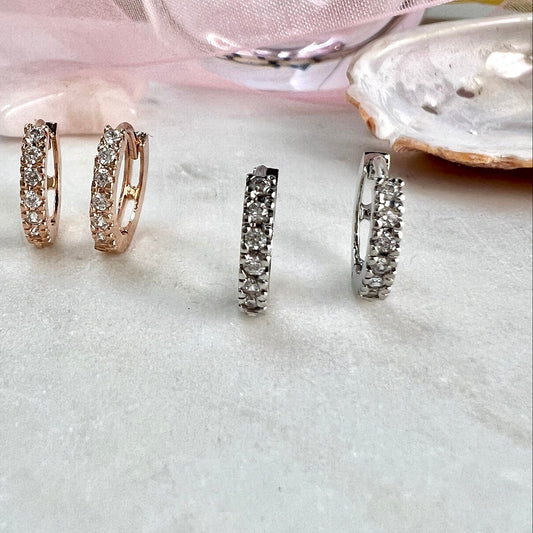 CZ Pave Sterling Silver Hoop Earrings, Huggie Hoop Earrings