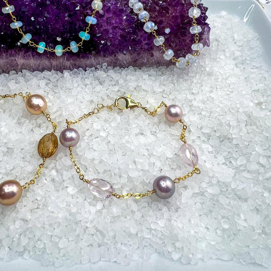Pink Tourmaline & Pearl Flower Necklace | Vintage-Inspired Gold