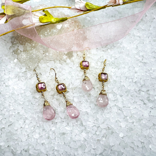 Pink Morganite & Tourmaline Earrings | Gold Filled Drop Earrings