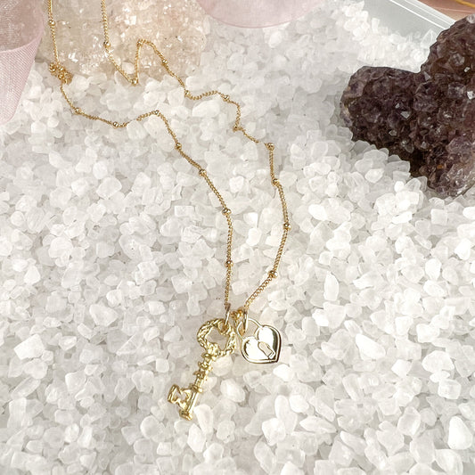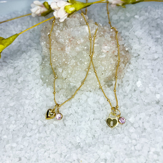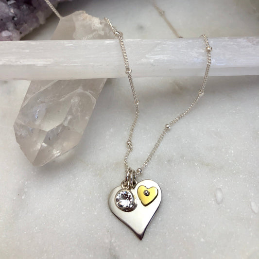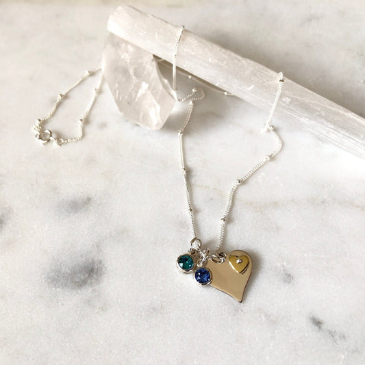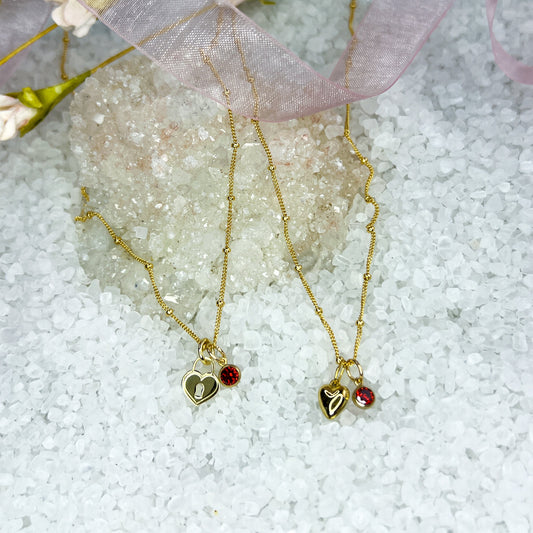 Customizable Heart & Crystal Charm Necklace | Gold-Filled