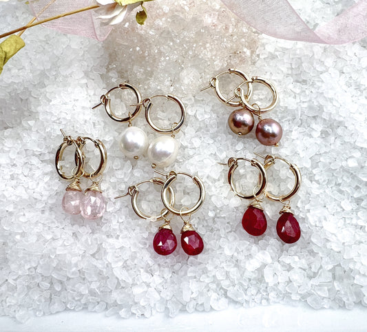 Gold Filled Hoop Earrings | Mix & Match Gemstone Charms | 3 Sizes