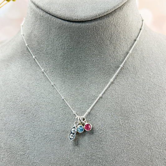 Two Peas in a Pod Necklace for Mom, Mom of Twins - Personalized with 2 Birthstone Charms