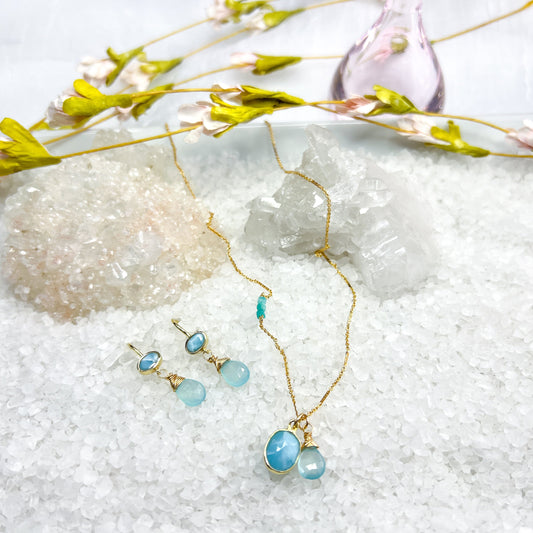 Ocean Light Drop Earrings – Larimar, Chalcedony & Blue Topaz