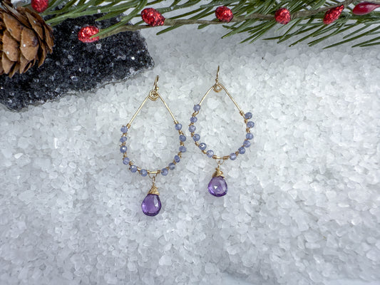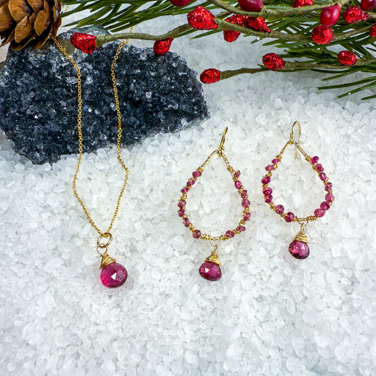 Rubellite Tourmaline & Rhodolite Garnet Wrapped Hoops