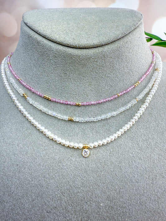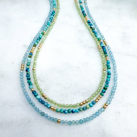 Dainty Gemstone Necklace with Gold Beads - Add Charms or Wear Alone