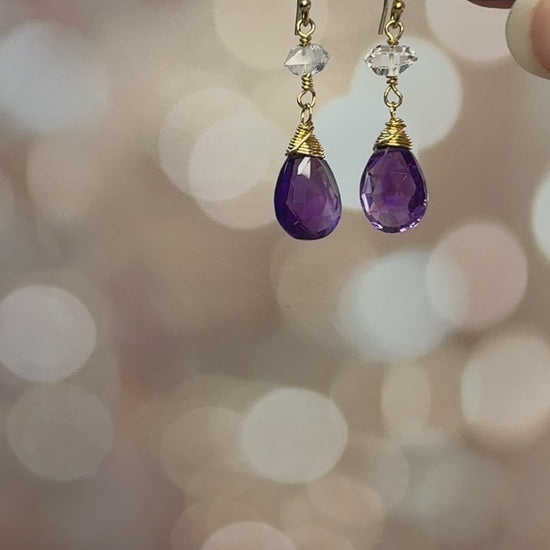 Amethyst & Herkimer Diamond Earrings