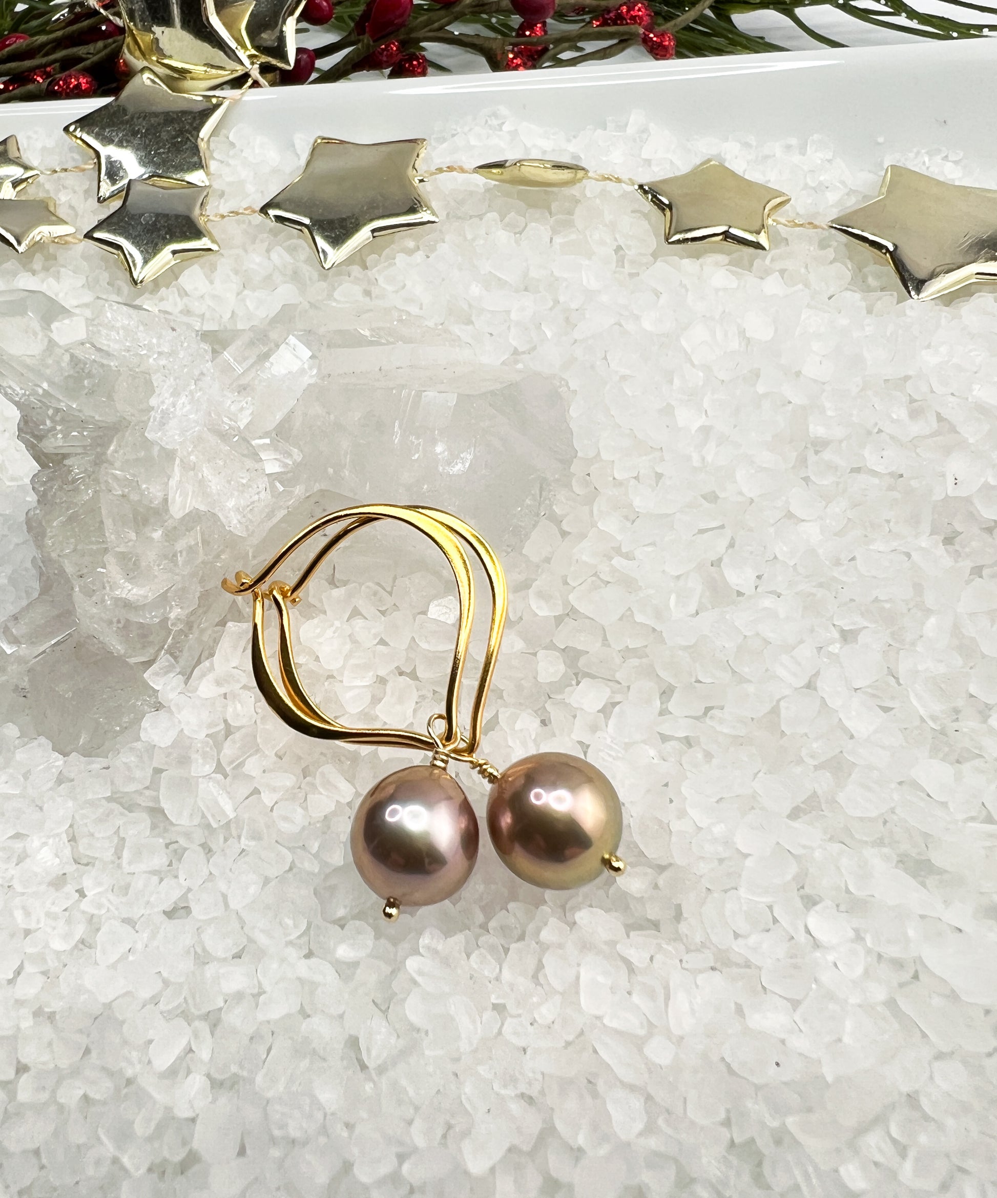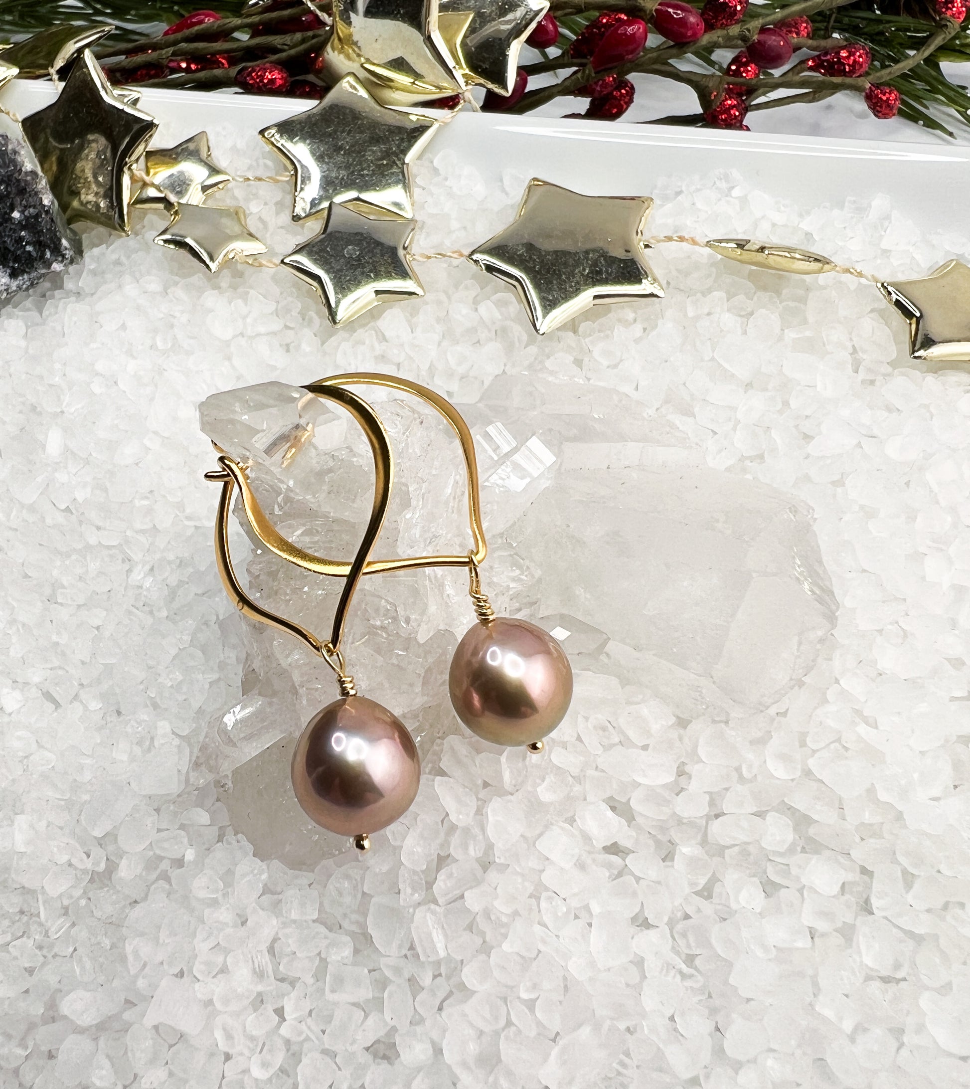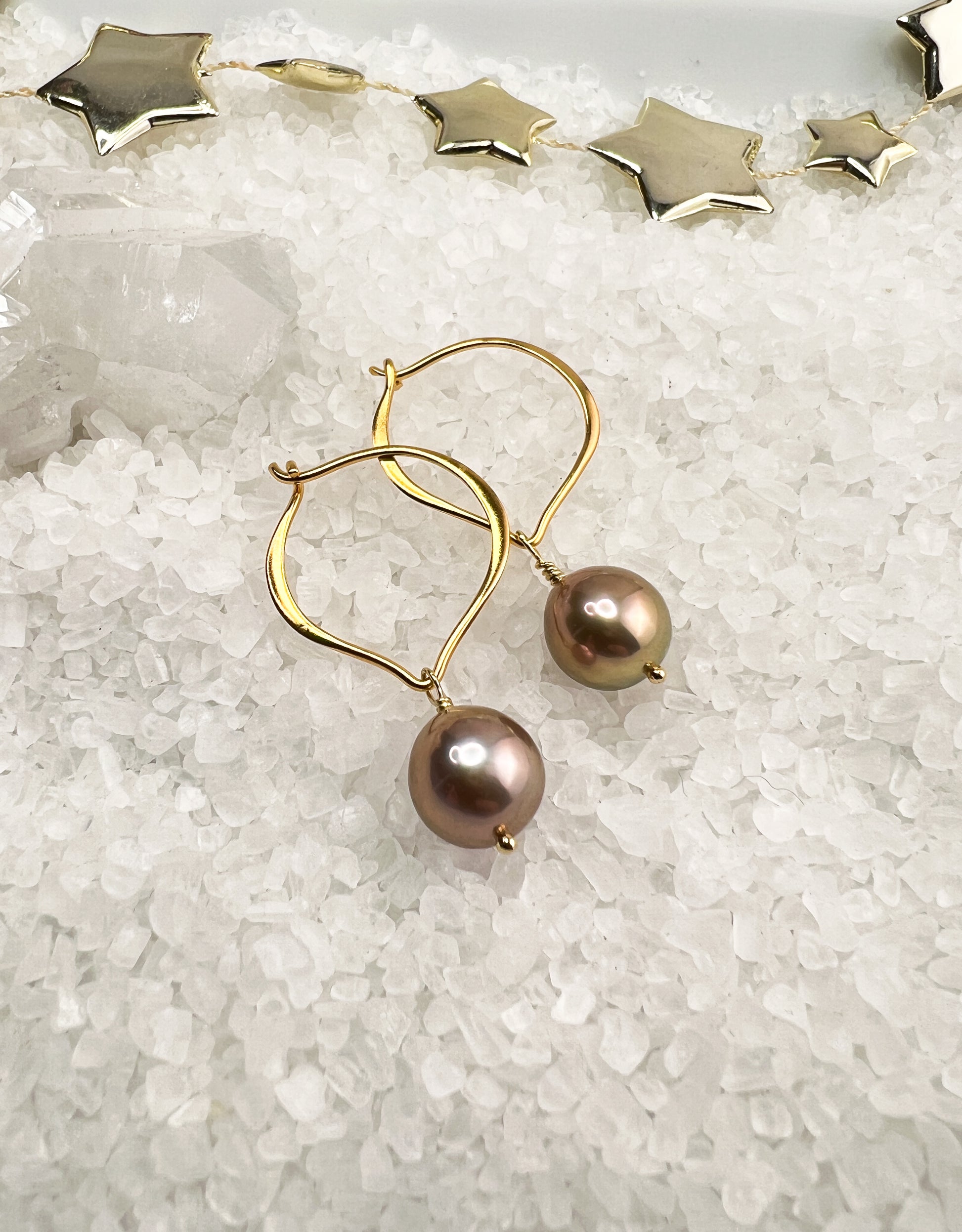 Beautiful Edison Pearls in a pink hue dangle from a thick Vermeil Hoop earrings. The hoops have a hook & loop at the end to keep them secure. The pearl dangles can be removed if you want to wear the hoops separately. Another option is to try a different colored pearl or gemstone charm from my other collection, that would fit perfectly on these hoops.