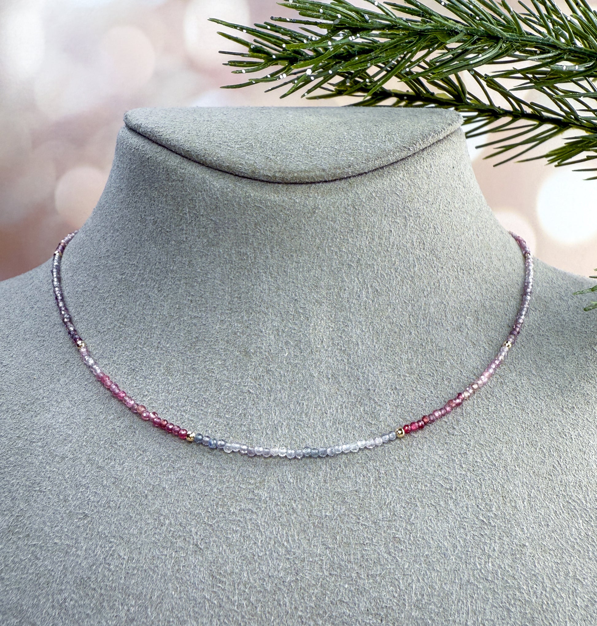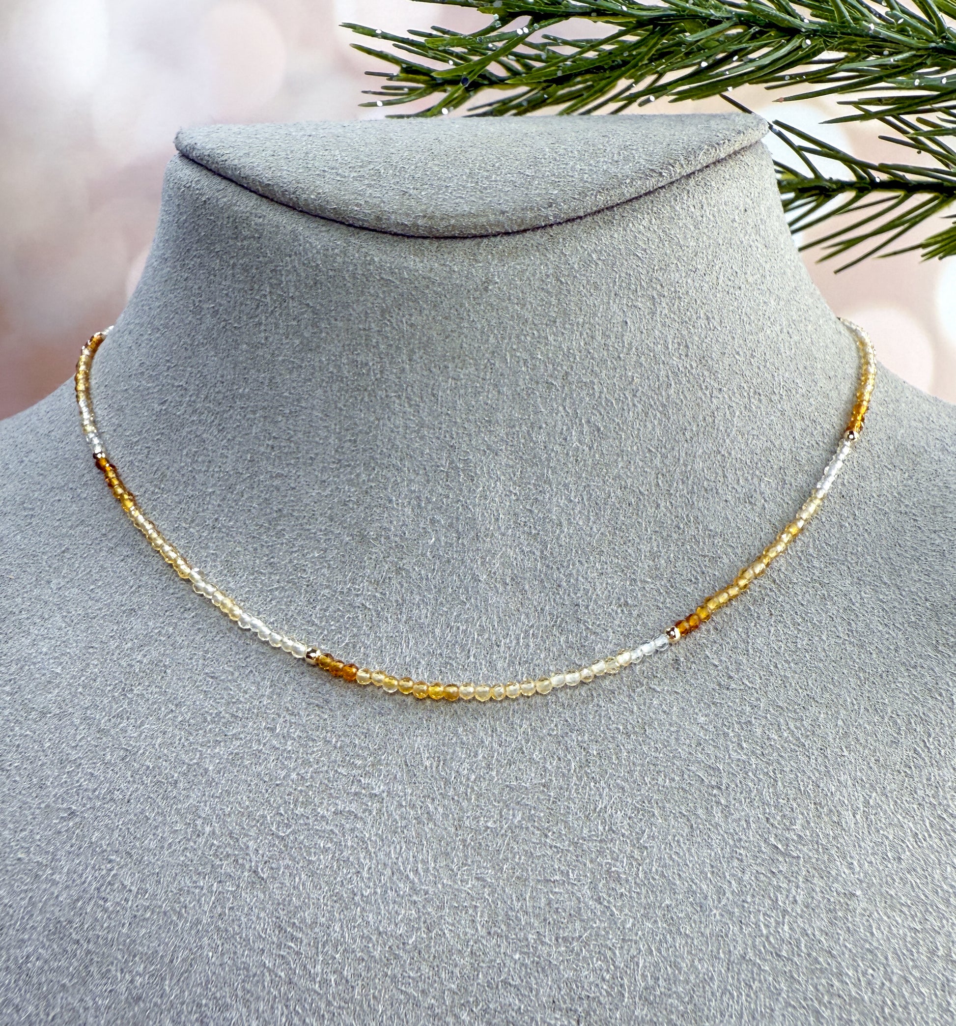 Dainty Gemstone Necklace with Gold Beads - Add Charms or Wear Alone