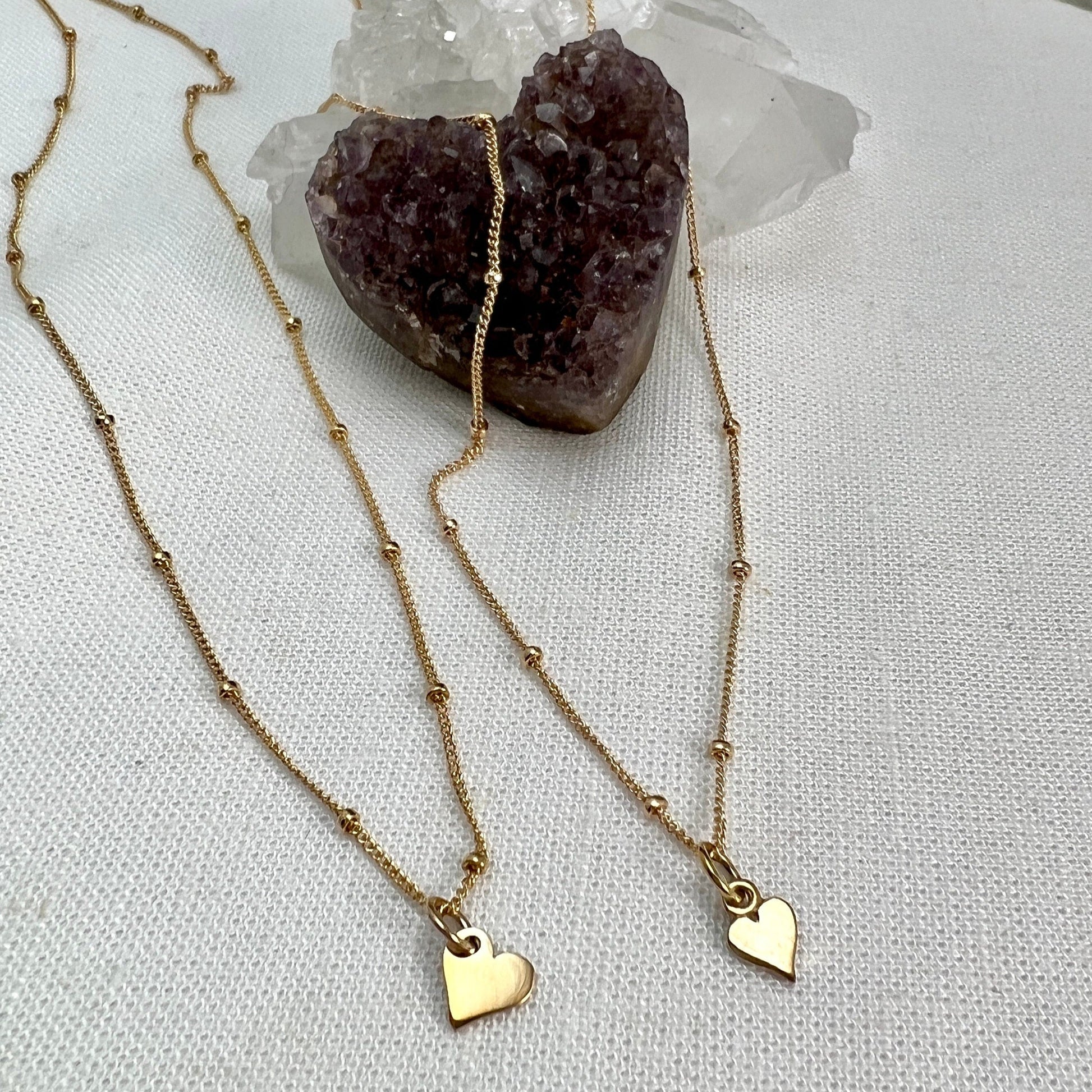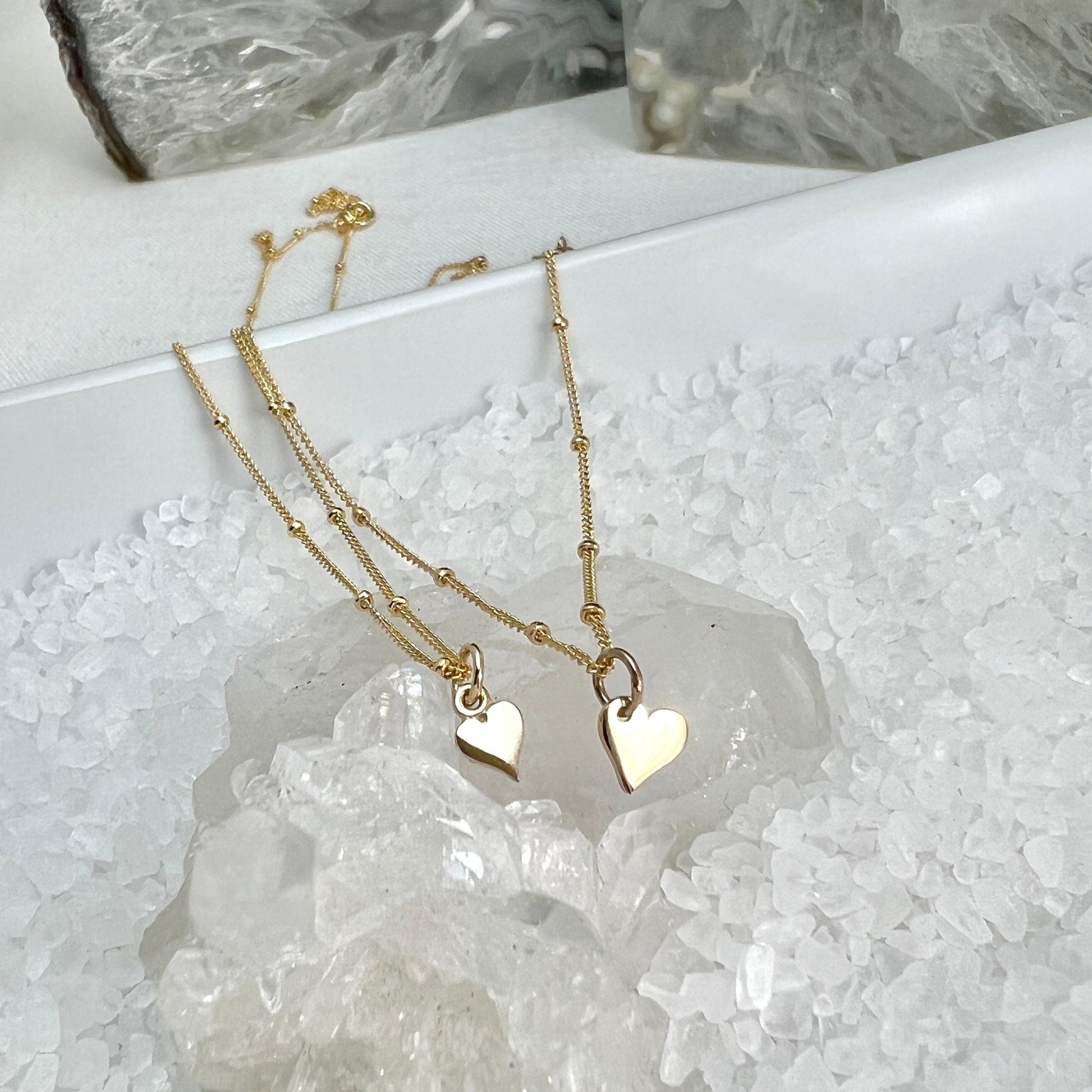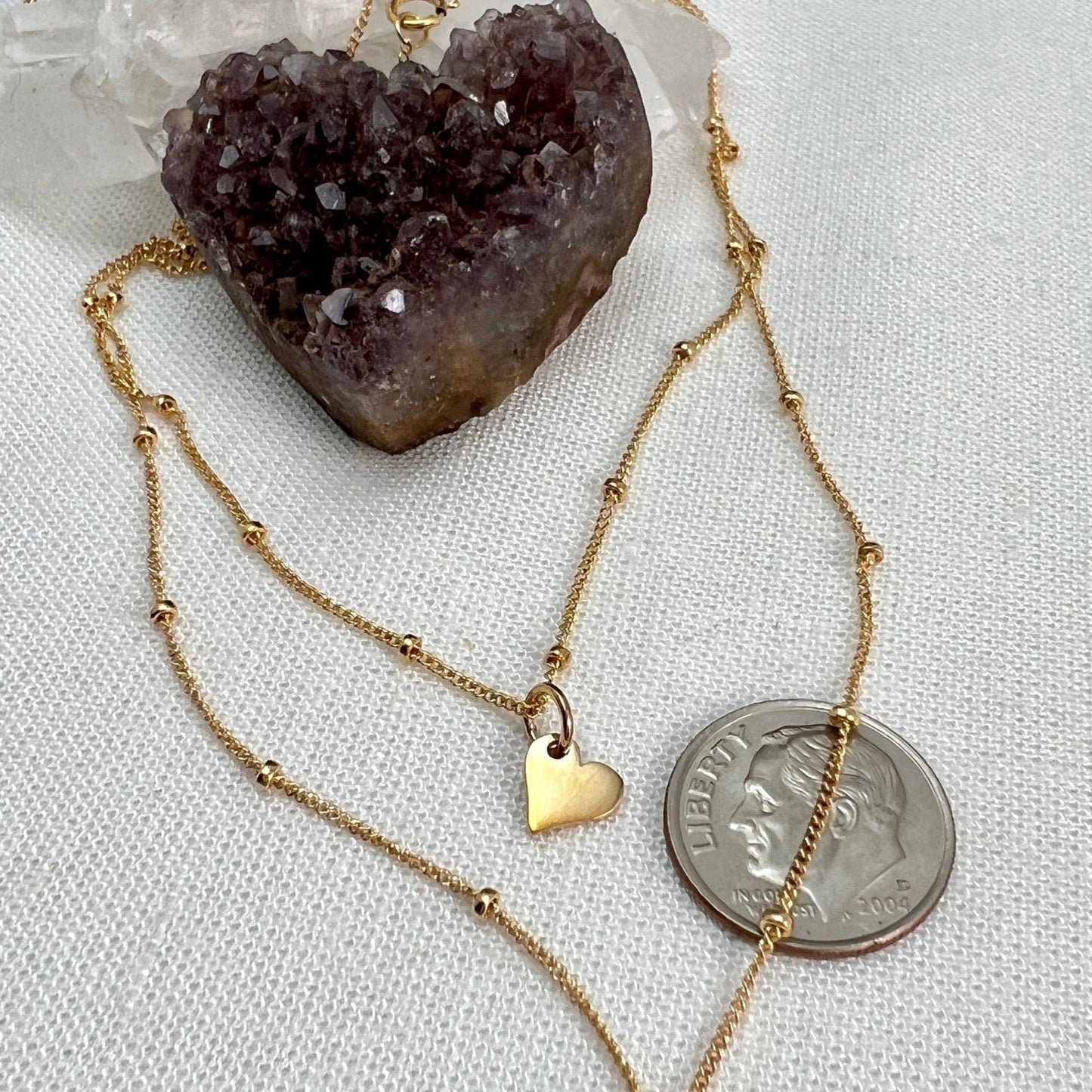 Add a touch of elegance with our Shiny Gold Vermeil Heart Charm, delicately suspended from a 16-18" adjustable Gold-Filled Satellite Chain.
